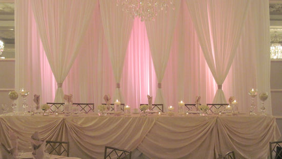 Please Note: Additional drape, swags and lights are required for head tables longer than 24′. Please request to see the Additions page for more information